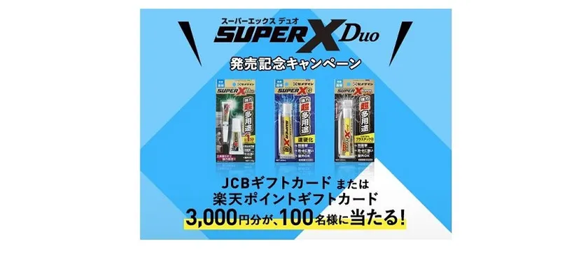 セメダイン株式会社(本社:東京都品川区、代表取締役社長:天知 秀介)は、世界のプロ現場からご家庭まで広くご使用いただいている「スーパーX」シリーズの追加ラインアップとして超多用途接着剤「スーパーXデュオ」の新発売にあたり、「スーパーXデュオ発売記念キャンペーン」を2021年3月15日(月)よりキャンペーンサイトにて実施いたします。
