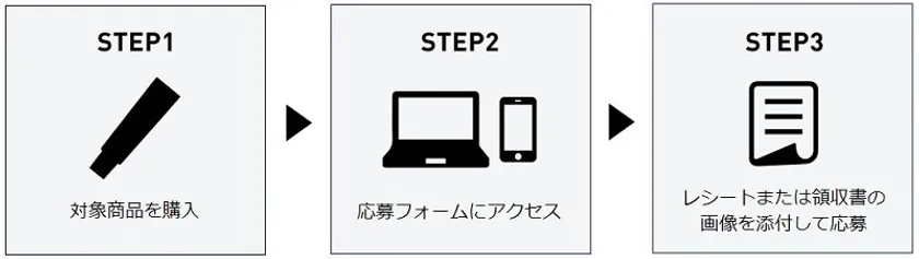応募フォームに必要事項を記入の上、期間中に購入したレシートまたは領収書の画像を添付しご応募ください。
