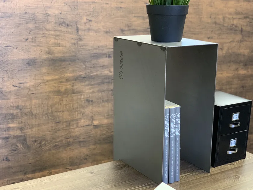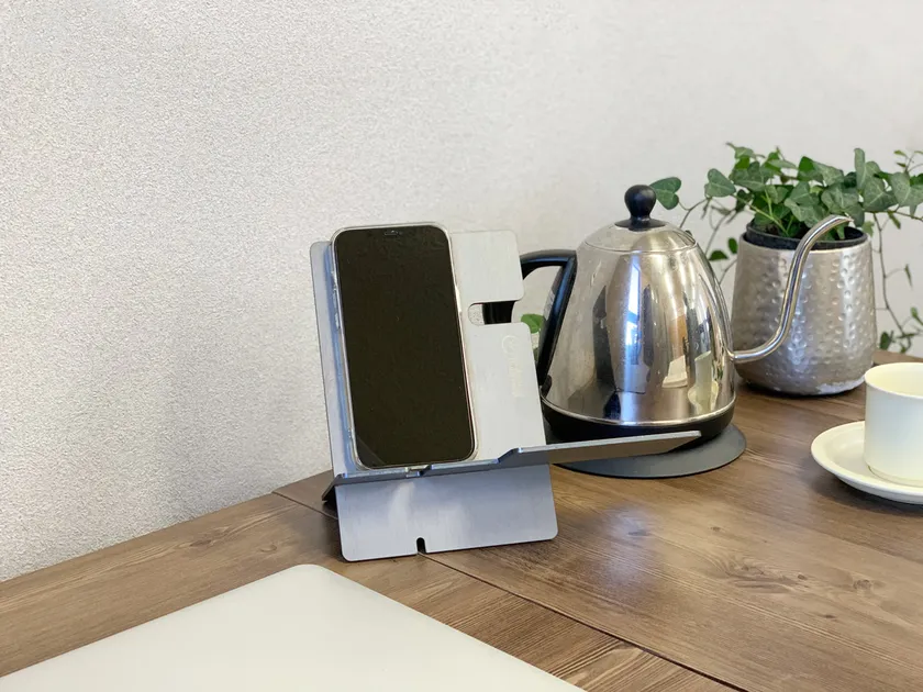 2PLATEは2枚の鉄板を重ね合わせ自立させるディスプレイスタンド。スマートフォンスタンド・腕時計・車の鍵などの小物を集約できるアイテムです。約1.3kgの重量は抜群の安定感。シンプルでありながら計算された形状は、鉄の質感で存在感あるインテリアのアクセントに。デスク周りを格上げするアイテムです。