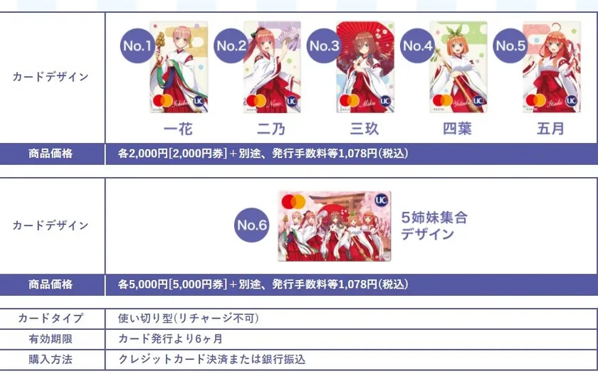 ユーシーカード、TVアニメ「五等分の花嫁∬」との オリジナル描き下ろしプリペイドカードを期間限定で販売