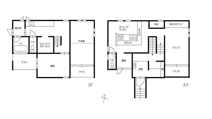 延床面積: 1F 46.78m2、2F 50.10m2、合計96.88m2