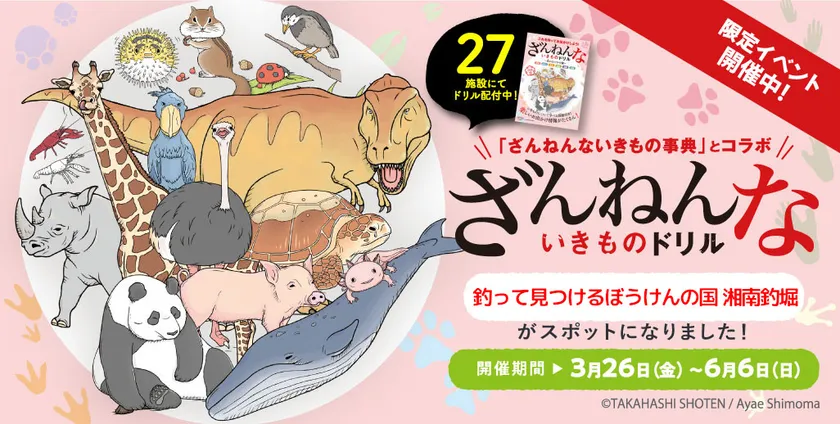 シリーズ累計420万部突破のベストセラー書籍で子どもたちに圧倒的な支持を受ける『ざんねんないきもの事典』シリーズがドリルになって全27施設とコラボイベントを開催。