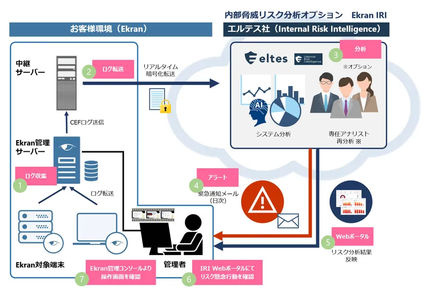 ジュピターテクノロジー株式会社(東京都府中市、代表取締役:石川 幸洋、以下 ジュピターテクノロジー)が販売する証跡管理ソリューション「Ekran(エクラン)」で、株式会社エルテス様(本社:東京都千代田区、代表取締役:菅原 貴弘、証券コード:3967、以下 エルテス)の内部脅威検知サービス「Internal Risk Intelligence(以下 IRI)」との連携を実現、「内部脅威リスク分析オプション(以下:Ekran IRI)」として販売開始いたします。