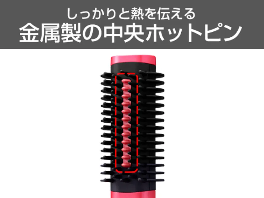 最高温度180℃のアイロン部は、金属製のブラシピンになっているため、髪の間を通ってしっかり熱を伝えます。