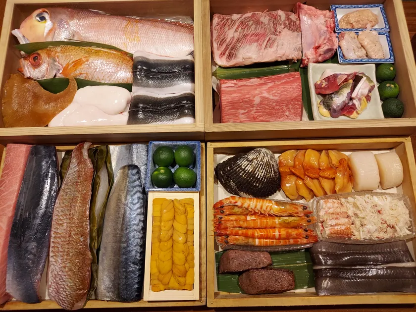 祇園南に佇むカウンター14席のみの人気割烹。決まったメニューはなく、毎日市場で仕入れた旬の食材がネタ箱に並び、お客様は目の前に並べられたネタ箱から好きなものを料理人と相談しながらお好みの調理法でいただくことができます。