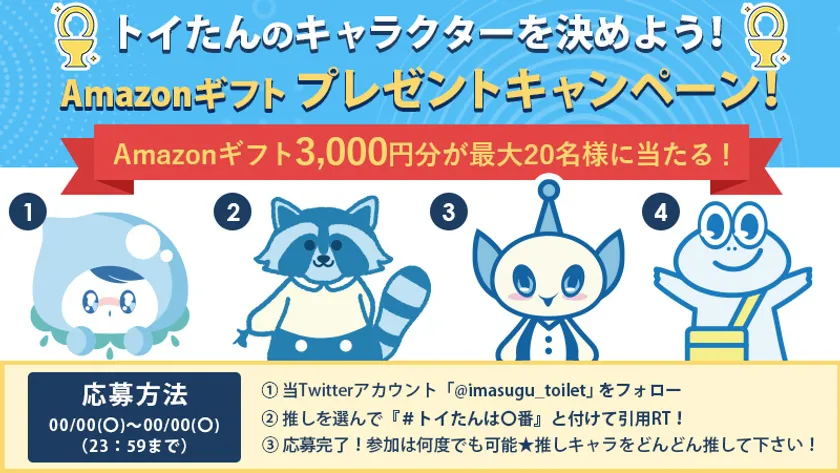 水道業者とユーザーを繋げる『トイレつまり修理受付センター』の マスコットキャラクター“トイたん”を決めよう! Amazonギフト3,000円分が最大20名様に当たるTwitterフォロー& リツイートキャンペーン!