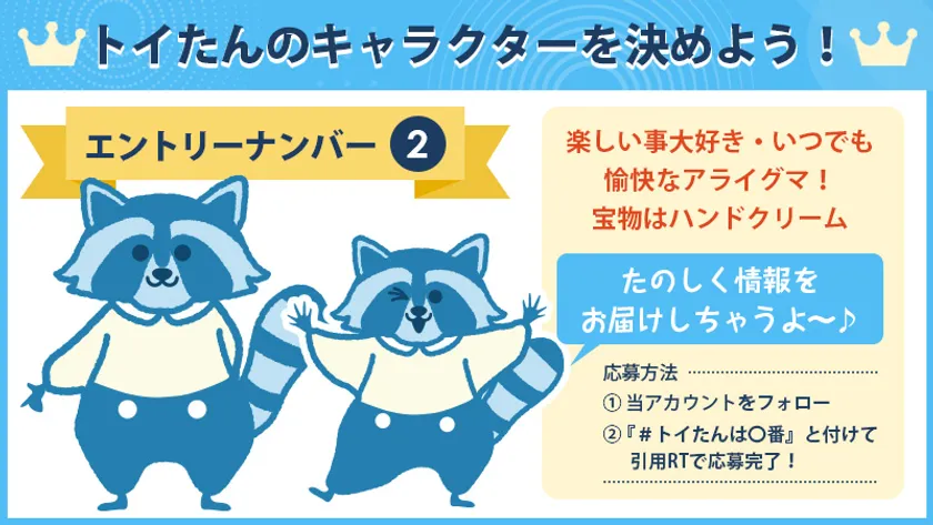 2. お気に入りのキャラクターを1キャラ選択し、キャンペーンツイートを引用リツイートする形で #トイたんは〇番 と1~4の番号を入れたハッシュタグを付けてリツイート