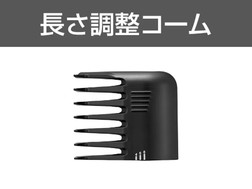 ・長さ調整コーム:すね毛や腕毛の毛量を程よく調整します。