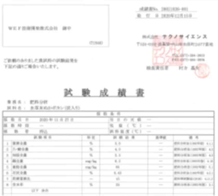 ・立命館大学久保先生開発のSOFIX分析及び特殊肥料としての分析でもその効果が確認出来ました