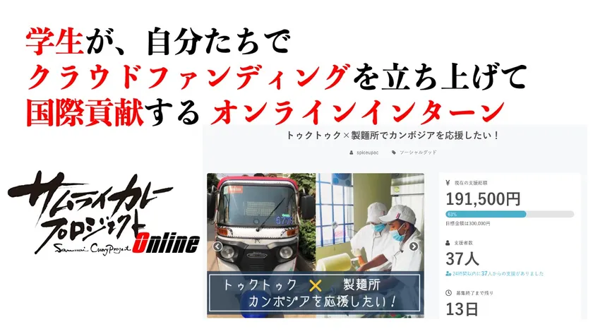 その方法が「カンボジアの特産品を、クラウドファンディングで販売し、その利益でトゥクトゥクを寄贈する」という体験をする、オンラインインターンシッププログラムです。