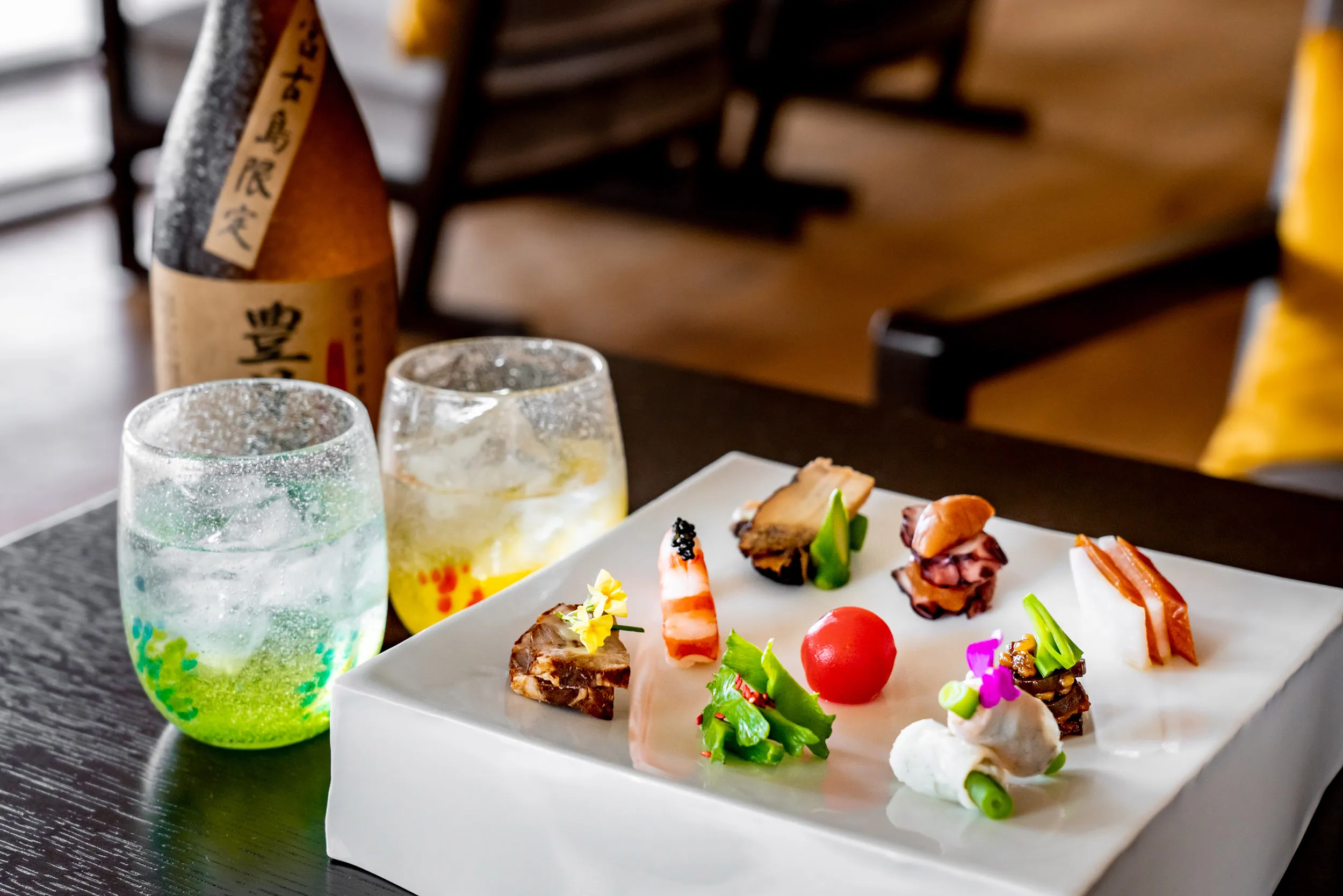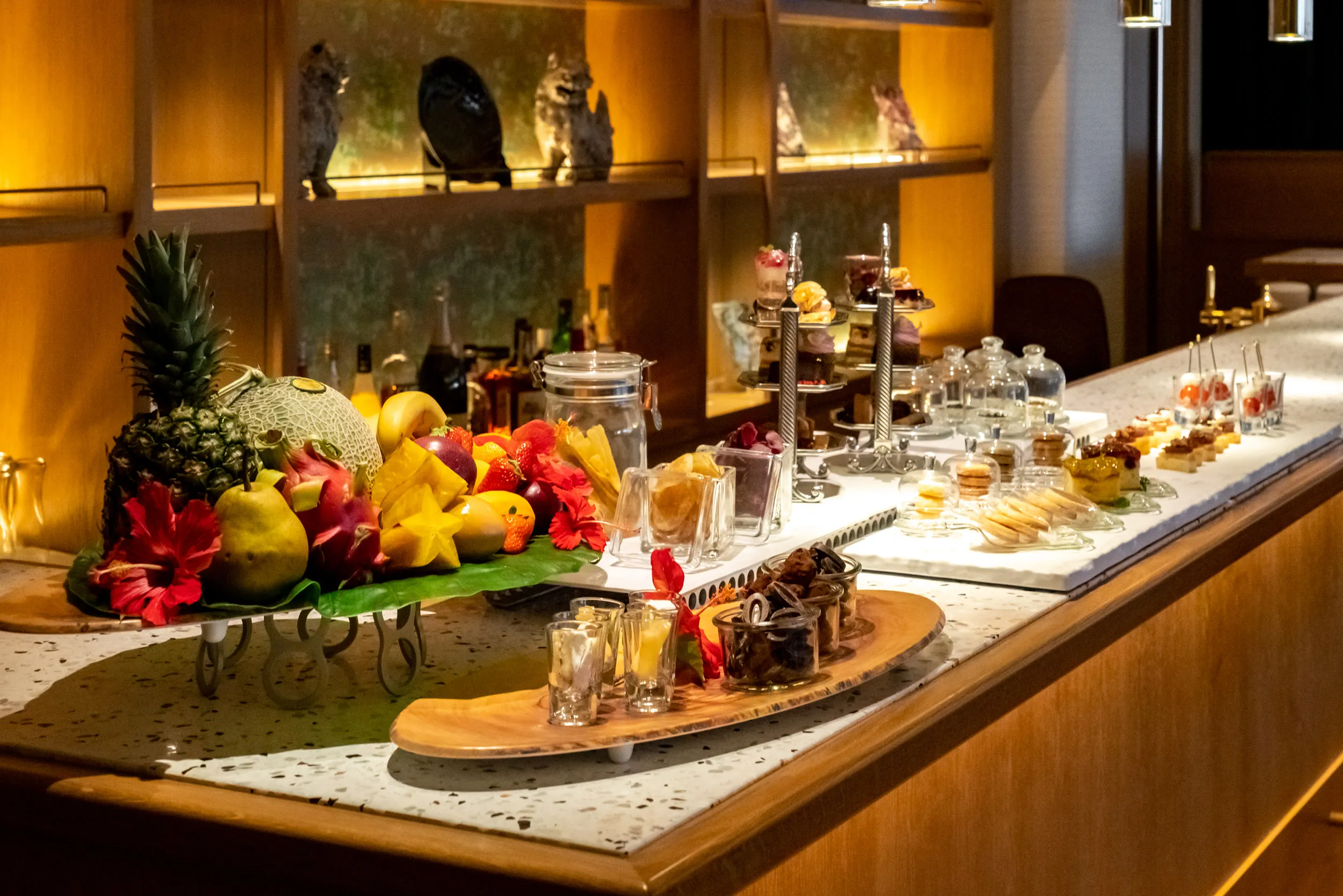 『ザ クラブラウンジ』は、「ホテル シギラミラージュ」コンベンションホール2階にあり、優雅でグラマシーな一日の海の色彩の変化をゆったりと寛ぎながらの一時をお楽しみいただけるのが特長です。PMにはスイーツやセイボリーフィンガーフードとともにアフタヌーンブレイクを、サンセット時間からは日替わりでご用意する3種のアペリティフ料理に合わせて、シャンパンや宮古島産の泡盛を楽しむ琉球ハッピーアワーをお過ごしくださいませ。