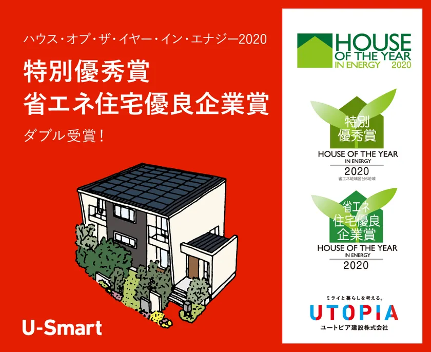 ユートピア建設株式会社(所在地:愛知県岡崎市、代表取締役:山口 雅弘、以下「当社」)は、一般財団法人日本地域開発センターが主催する「省エネルギー性能やCO2削減等へ貢献する優れた住宅を選定する表彰制度『ハウス・オブ・ザ・イヤー・イン・エナジー2020』」において、「特別優秀賞、省エネ住宅優良企業賞」を受賞し、2018年度より3期連続の受賞となりました。