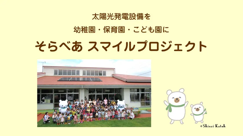 このプロジェクトは、企業や個人の皆様のご支援により、全国の幼稚園・保育園・こども園などの未就学児向け教育・保育施設を対象に、太陽光発電設備「そらべあ発電所」を寄贈し環境教育活動を行う取り組みです。