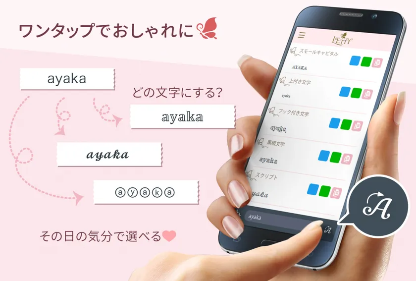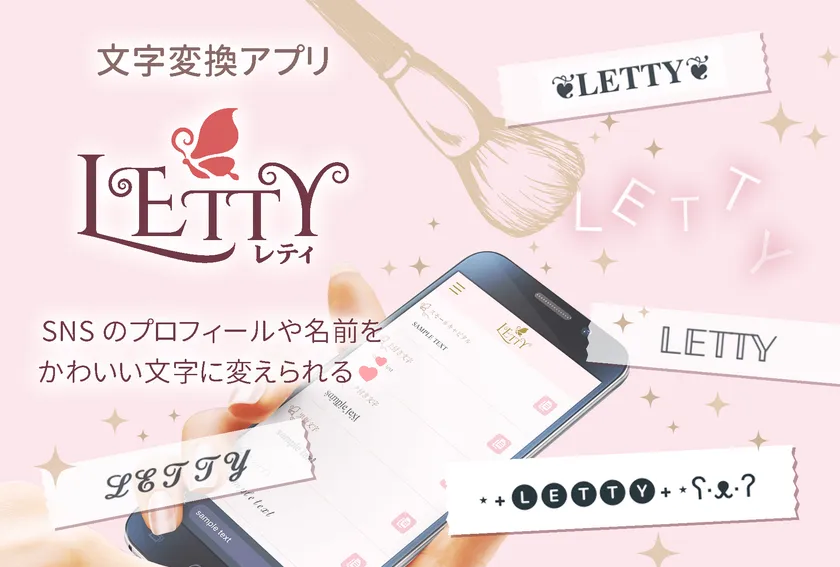LETTY(レティ)は特殊文字を使ったフォント変換アプリです。フォームに入力した文字をワンタップでオシャレに加工することができます。10代から20代の女性の間では文字を加工することが密かなブームになっており、SNSのニックネームなどでオシャレ文字を利用するユーザーが大幅に増加しています。LETTYは利用者の8割以上が女性であり、新しい時代の「文字映え」アプリとして徐々に注目が高まっています。