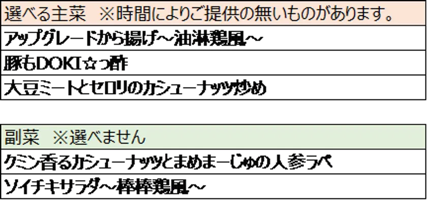 メニュー:主菜が選べる3種のデリボックス 1,000円(税込)