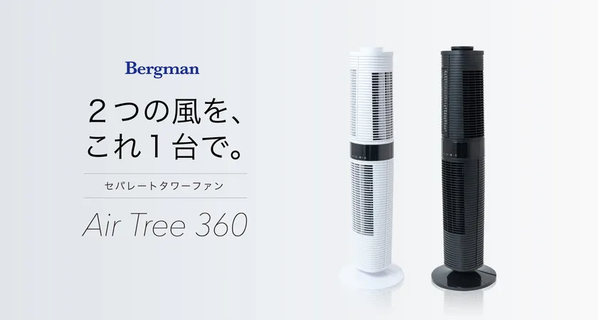 2つの風を、これ1台で。上下別の方向に風が行き届く 『セパレートタワーファン Air Tree 360』を 新ブランド「Bergman」より4月15日に販売開始