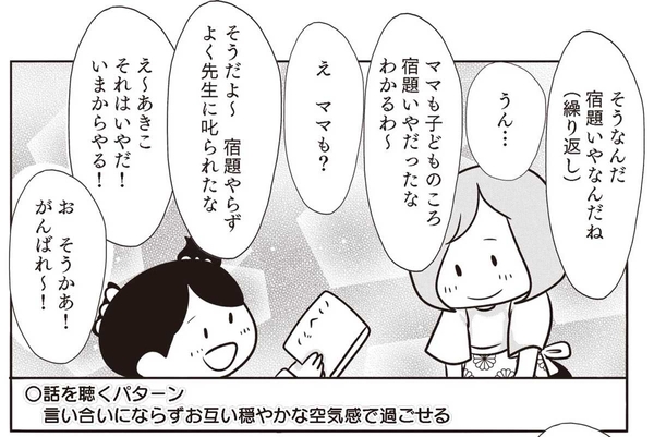 また、本書では、小学2年生のあきこちゃんが、年相応の自立を果たしていき、無事に母子登校を乗り越えていくマンガを用いて、この問題に向き合います。専門的分野をマンガでわかりやすく伝える手法は珍しいものではありませんが、本書のマンガは、母子登校支援の専門家自らが描いています。あきこちゃんの表情、お母さんのイライラする様子や言葉など、現場を知っているからこその描写が、当事者の共感を呼び、問題解決への自信を生み出してくれます。