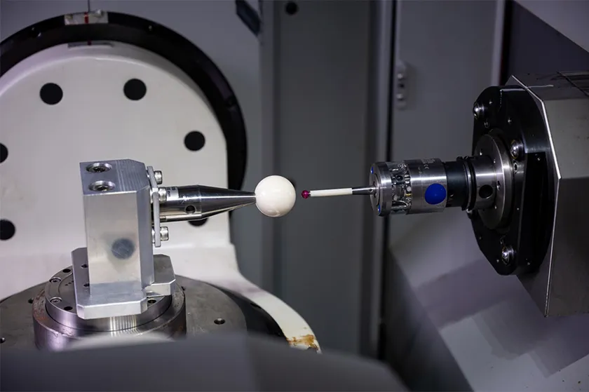 マシニングセンターでプローブキャリブレーション中