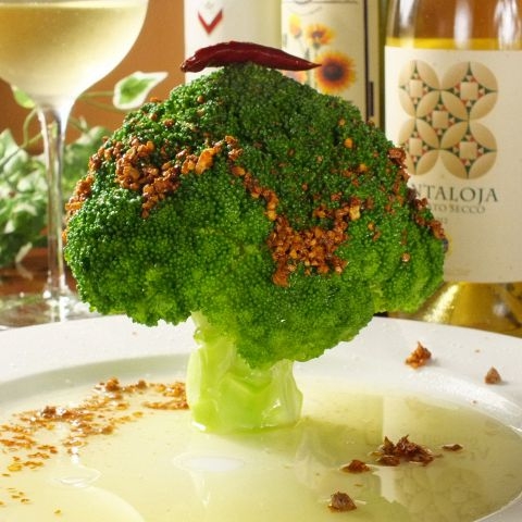 この料理はメニュー名の通り、お皿の真ん中にドンとブロッコリーがそびえ立っています。テレビや雑誌でも紹介されたことがありますので、もしかするとご存知の方もいらっしゃるかもしれませんね。