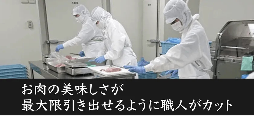また、同じ部位でも個体・位置によっても肉質は異なります。肉の見極めをするのはプロの職人の技です。※弊社社員も短期研修を修了しています。