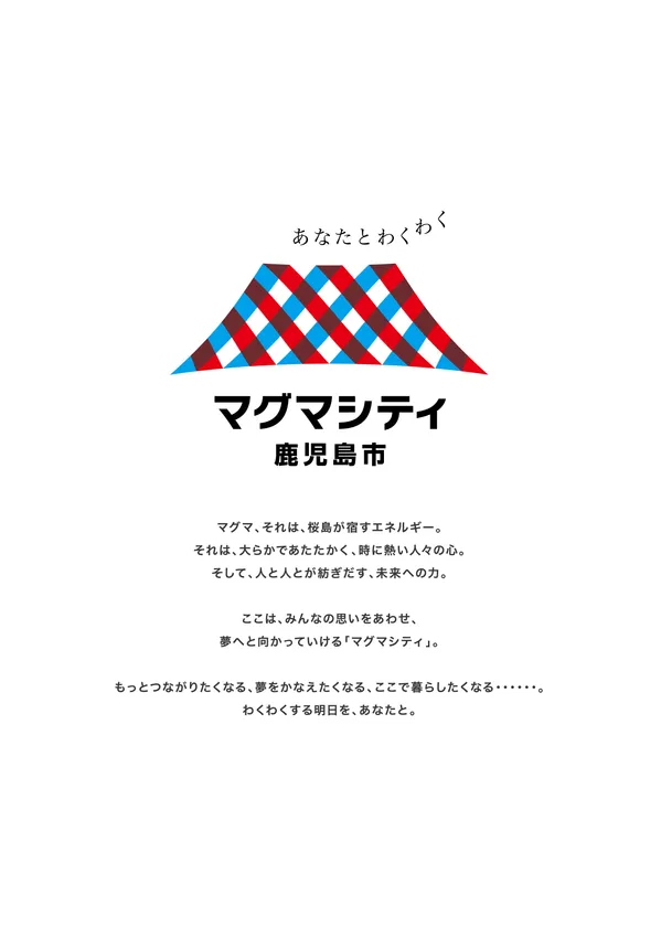 「あなたとわくわくマグマシティ」は、「こんなまちでありたい」という願いを込めた鹿児島市のシティプロモーションの合言葉。桜島をイメージする“マグマ”というフレーズは、まちや人が持つ“熱量”を表しています。