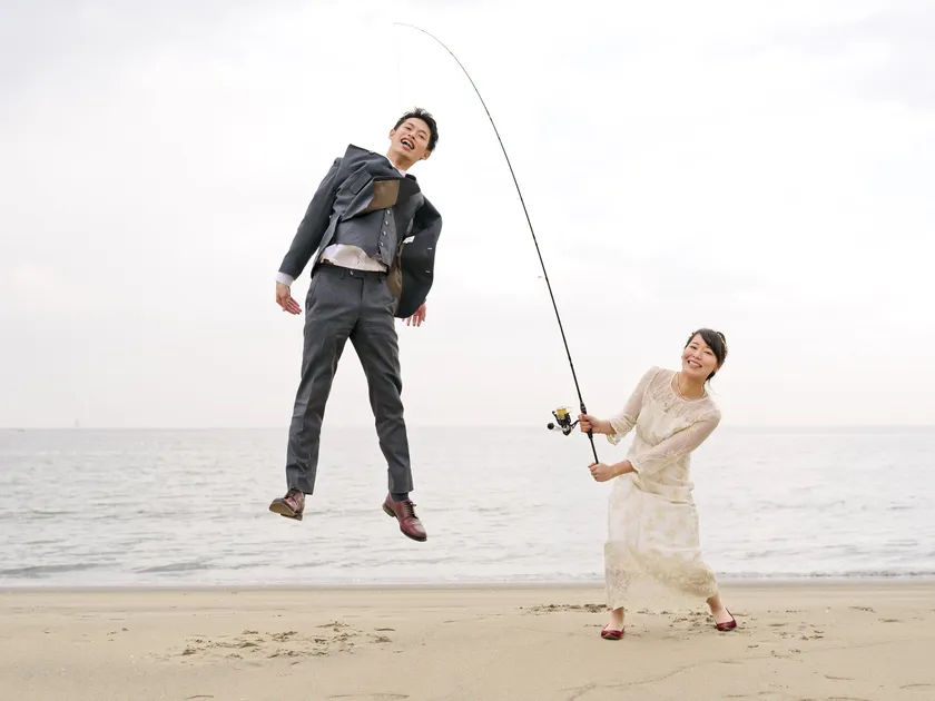 入籍日に津市阿漕浦海岸で撮影した一枚を、写真コンテストに応募。コロナ禍で式が挙げられていない2人にとって、とっておきのウェディングフォトが完成しました!