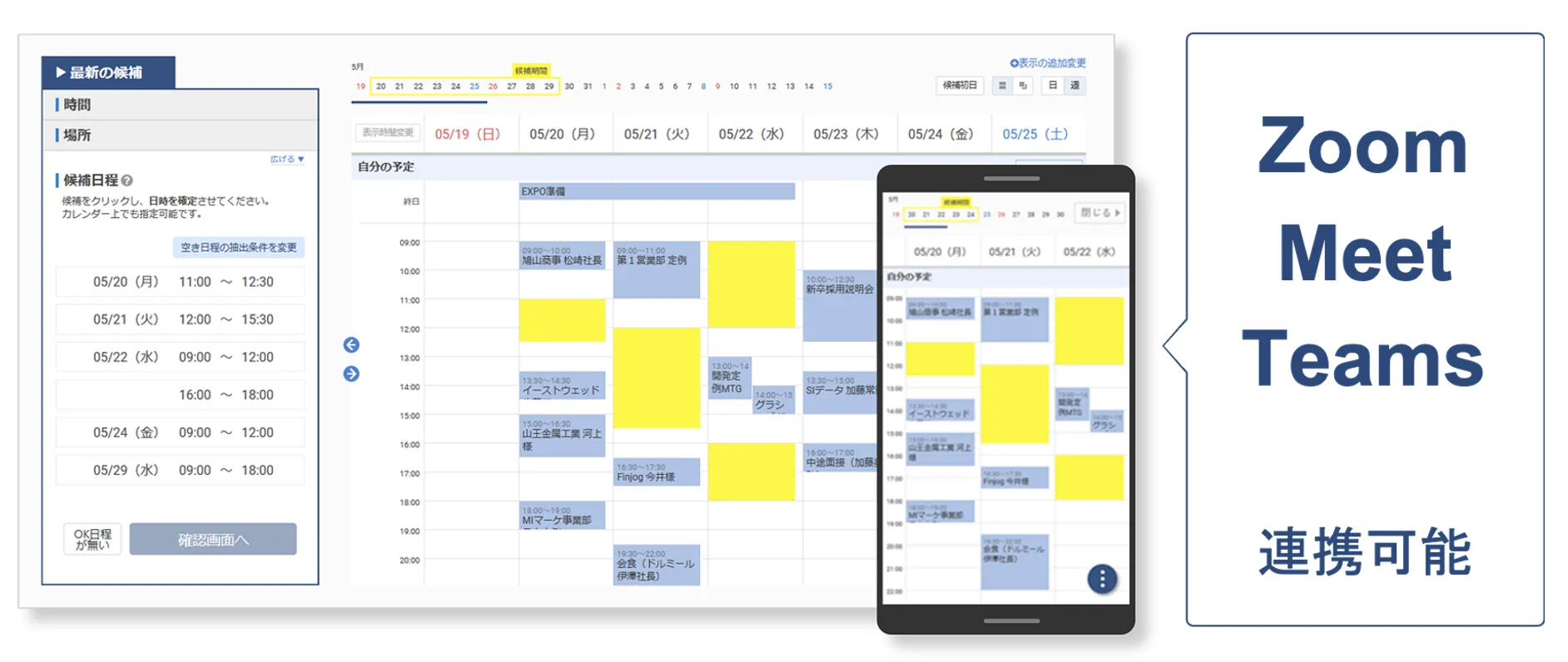 eeasyは、Googleカレンダー・Outlook予定表と連携することで、空き日程を自動判定し、ビジネス上の日程調整を自動化するサービスです。