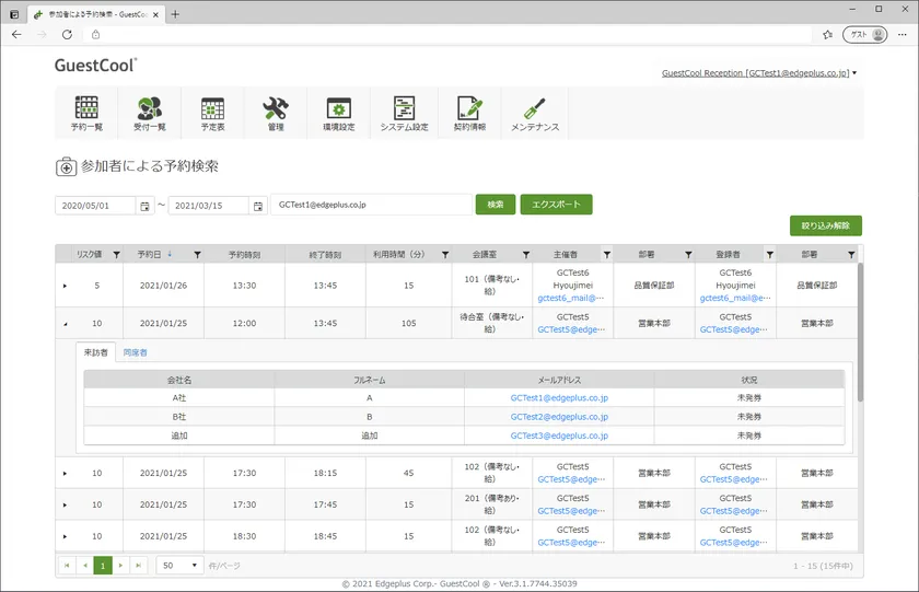 株式会社エッジプラス(東京都渋谷区、代表取締役:木村 真由美)は、統合来訪者管理システム「GuestCool」の機能に、Webによる会議参加と来訪による対面参加のハイブリッド会議への対応、接触のあった同一会議参加者の確認と迅速な対応を可能にするコンタクト検索などの機能拡張を行った「GuestCool」の提供を2021年3月22日より開始します。