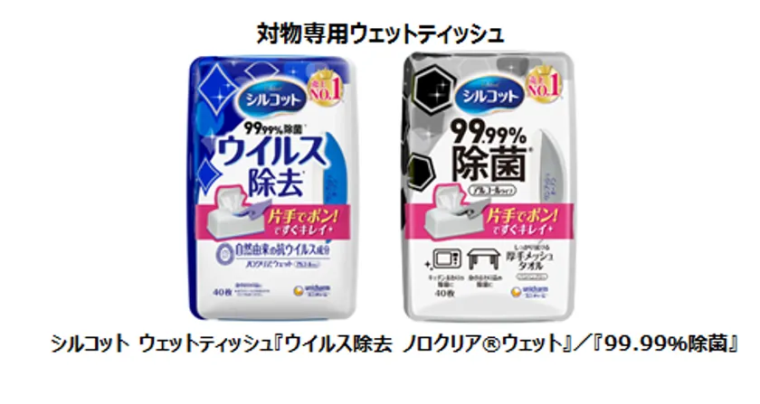 ユニ・チャームと北里大学が新型コロナウイルス抑制を シルコット ウェットティッシュ 『ウイルス除去 ノロクリア(R)ウェット』『99.99%除菌』で実証