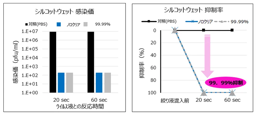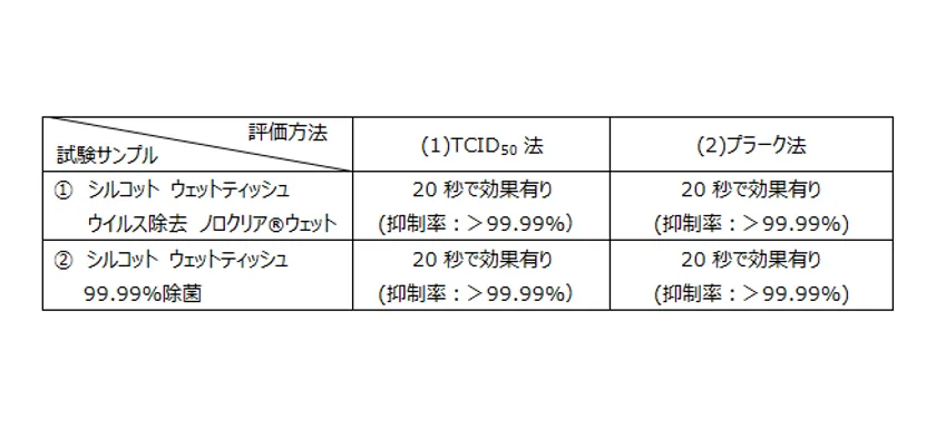 (1) TCID50法による「シルコットウェット」ウェットシートを絞った液体ウイルス抑制率を検証