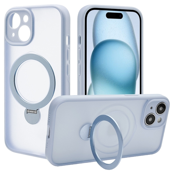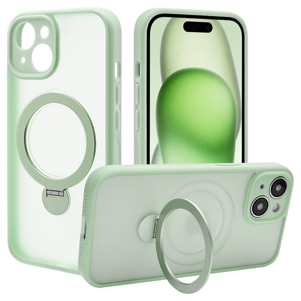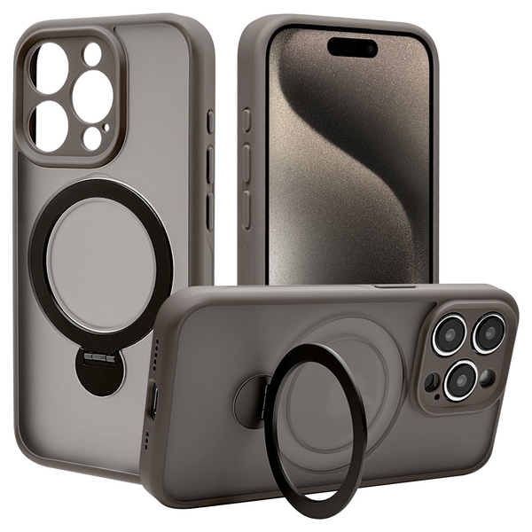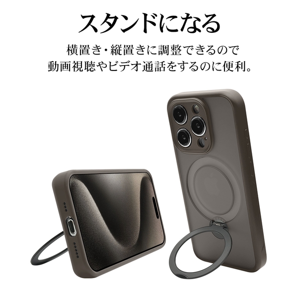 指が通せて操作安心、120度開閉&360度回転でお好みの角度に調整可能な、MagSafe対応リング付き。