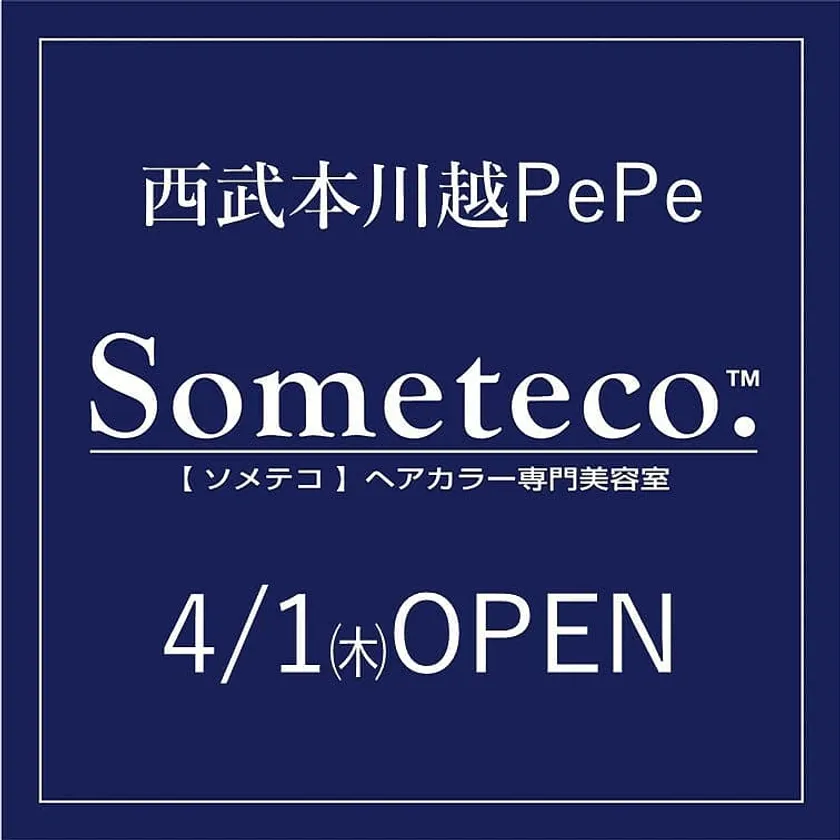 ヘアカラー専門美容業を手掛ける、有限会社N&A(所在地:埼玉県久喜市、代表取締役:小久保 明夫)は、ヘアカラー専門美容室 Someteco.(ソメテコ)西武本川越ペペ店を、2021年4月1日(木)より開店いたします。