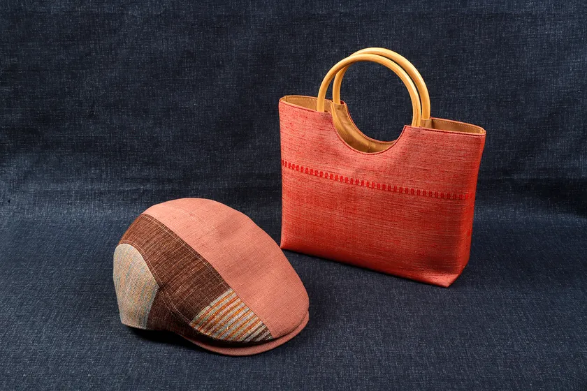 上田紬 竹バッグ/ハンチング 小岩井カリナ