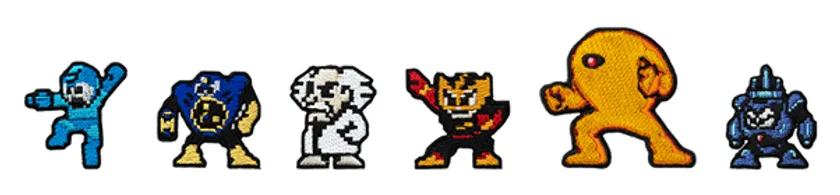 2way刺繍ワッペンは、「ロックマン」シリーズと「ロックマン エグゼ」シリーズから、それぞれ以下の6種を展開します。