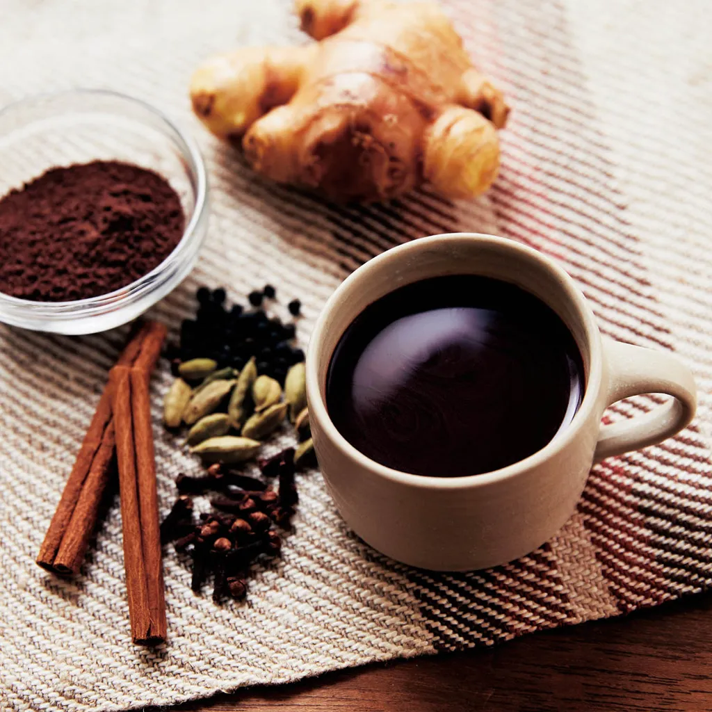 シナモン、クローブ、生姜、カルダモン、黒胡椒など