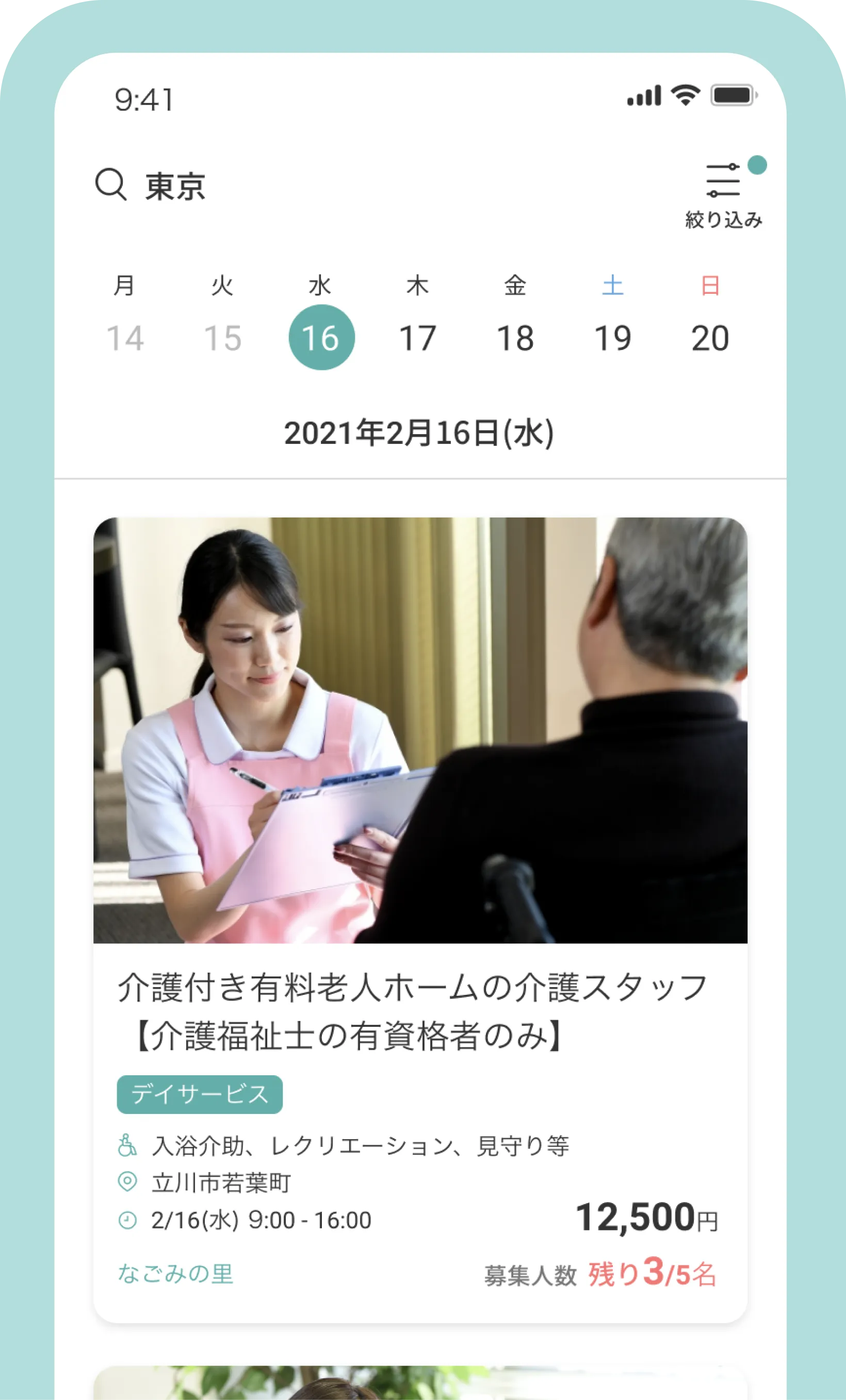 当社は、『Ucare』を通して介護施設が人材不足で困っているシフトの穴埋めを行い、その後もワーカー(求職者)との粘着性を高めて常勤化をサポートしていくことにより、双方にミスマッチのない雇用を実現させてまいります。
