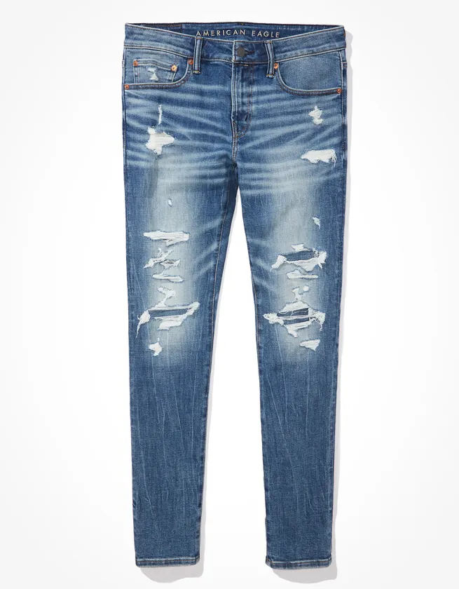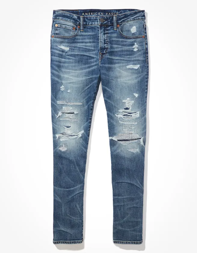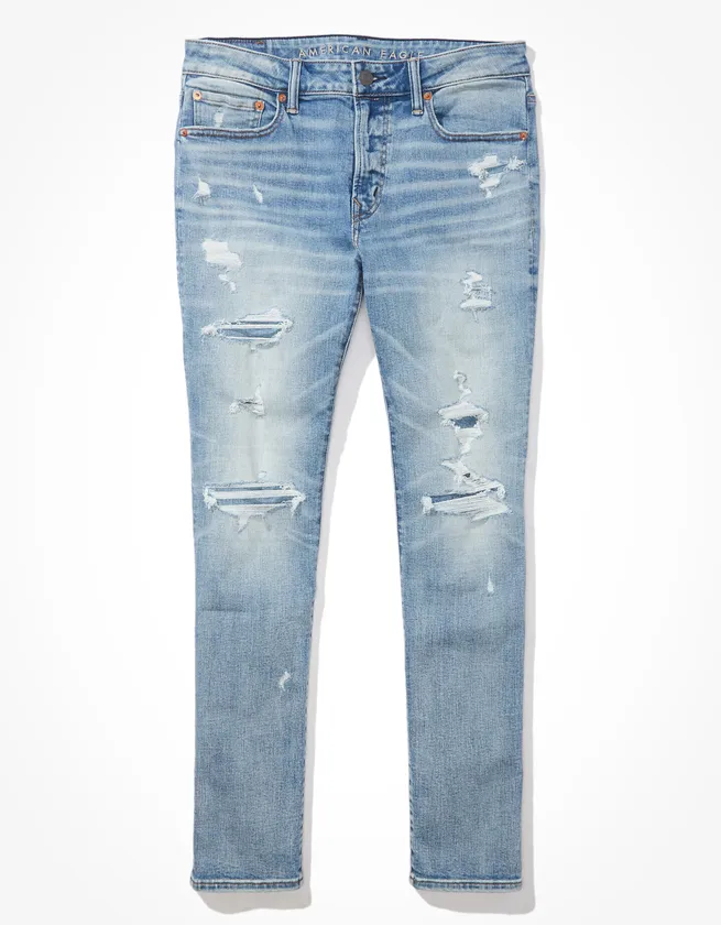 軽量&柔軟性はファッショナブルなウォッシュドデニムと同じくらい、メンズジーンズにとってとても重要です。今シーズンのアメリカンイーグルは、ガゼットクロッチが施されたムーブ・フリージーンズを新たに発表しました。快適さと動きの自由度が高まり、より快適な履き心地のジーンズです。太ももに少しゆとりのあるスリムフィットをお探しの方におすすめのジーンズです。