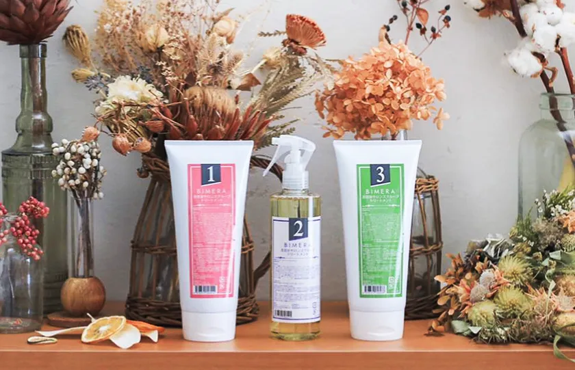 BIMERAトリートメントは3つのトリートメントによって、段階を踏んだ丁寧なダメージケアを行います。週に一度のご利用で美しい髪質に導きます。