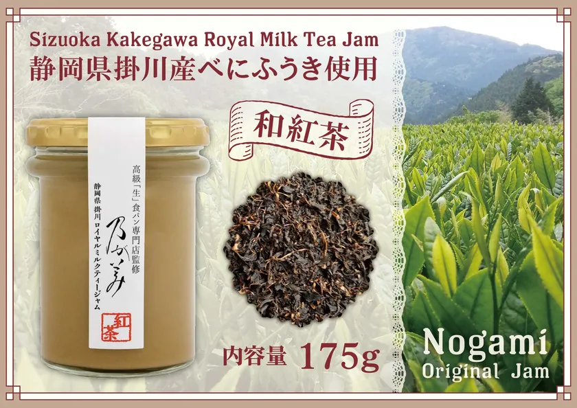 深蒸し茶日本一の茶処である静岡県掛川市の紅茶品種「べにふうき」を100%使用したジャムとなっております。「生」食パンとのマリアージュや香り高さを感じていただける特別なジャムとなっています。是非一度ご賞味ください。