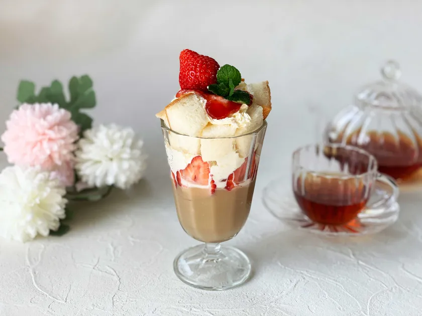 ロイヤルミルクティーパフェ ストロベリーを添えて