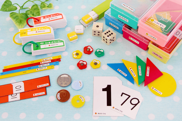 名前つけが大変で有名な小学校の算数セット。このシールがあればかなりの時短になります。追加できるピンセットも使いやすいと好評です。
