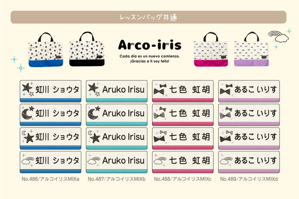 シールDEネームオリジナルブランド“Arco-iris”(あるこいりす)より、同ブランドのレッスンバッグとお揃いでつかえるデザインも追加しました。