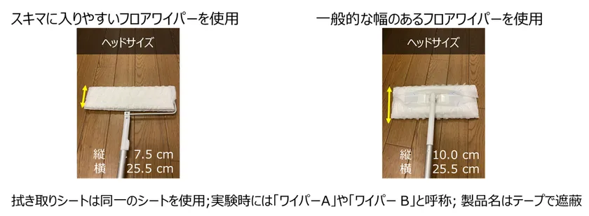 一般的な幅のフロアワイパーを用いたフローリング清掃課題