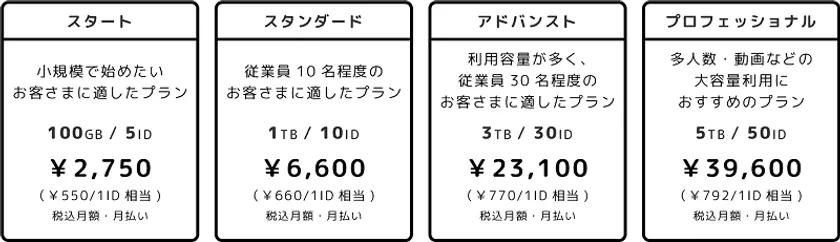 *ID追加オプション10ID毎 ¥3,300、容量追加オプション1TB毎¥5,500