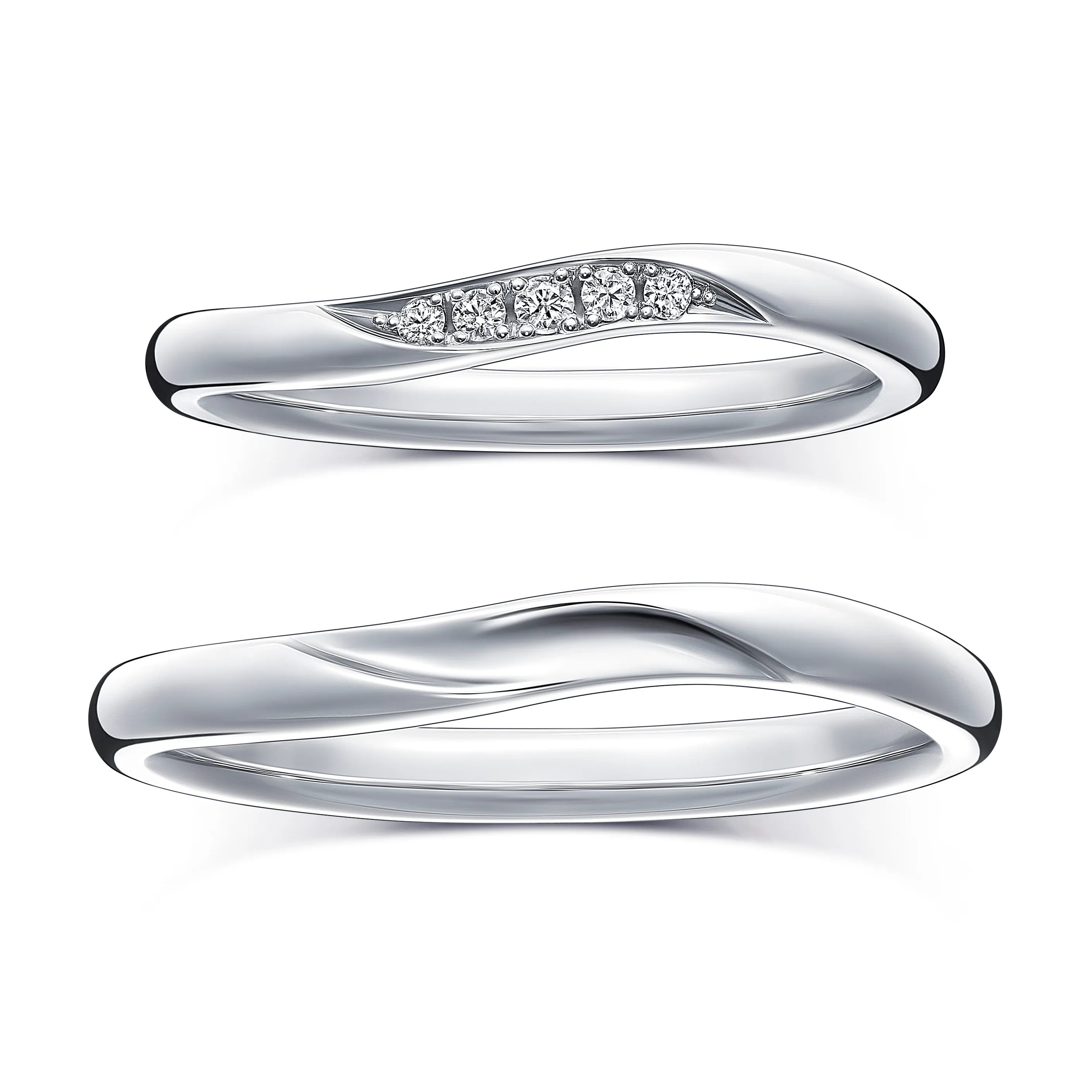 谷間をさらさらと流れる清流はやがて大海原へ。ウェーブラインであるがままの自然を流れる渓流を想起させながら、ふたりの清らかな愛と悠久の未来が続くよう、願いを込めて。