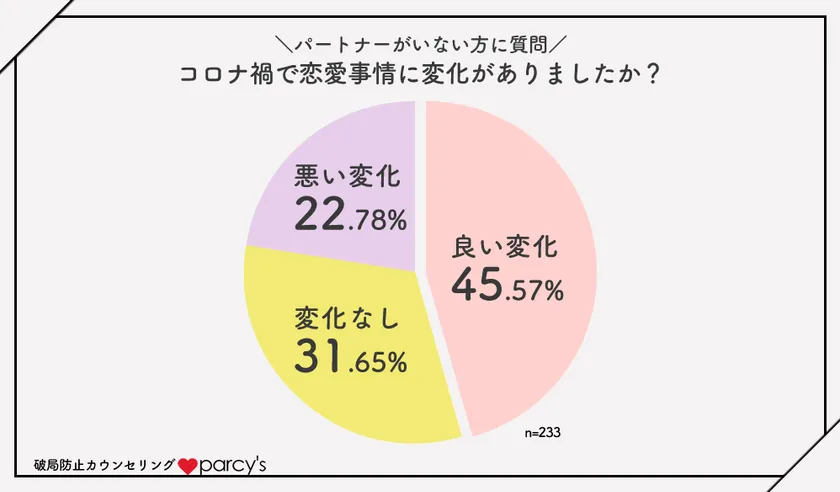 ◆コロナ禍の恋愛事情に良い変化があったと回答したのは45%