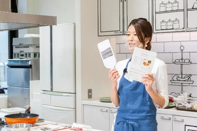 ■ワンラボとオレンジページは、「もっと料理上手になるキッチン」をテーマとし、単身者向け住宅のキッチンでも楽しみながら効率的に料理ができる設備・仕様を研究する「PlusKitchen PROJECT」を立ち上げ、2018年3月より活動を行ってきました。その中で「+ONE KITCHEN」を共同開発し、日鉄興和不動産の都市型コンパクトマンションブランド「リビオレゾン」シリーズで採用しています(一部物件)。「コロナ禍におけるライフスタイル・価値観に関する調査*」では「キッチンを使うことが増えた」という人が約53%に上り、おうち時間の充実に料理は大切な存在となっています。そこで、益子焼きの器を中心にしたテーブルコーディネートに、洋風メニューを盛り合わせたおうちカフェスタイルを提案。料理の作り方と、テーブルコーディネートに映える盛りつけ方を、オレンジページ専属講師SHINOBUさんが登壇、デモンストレーションしました。