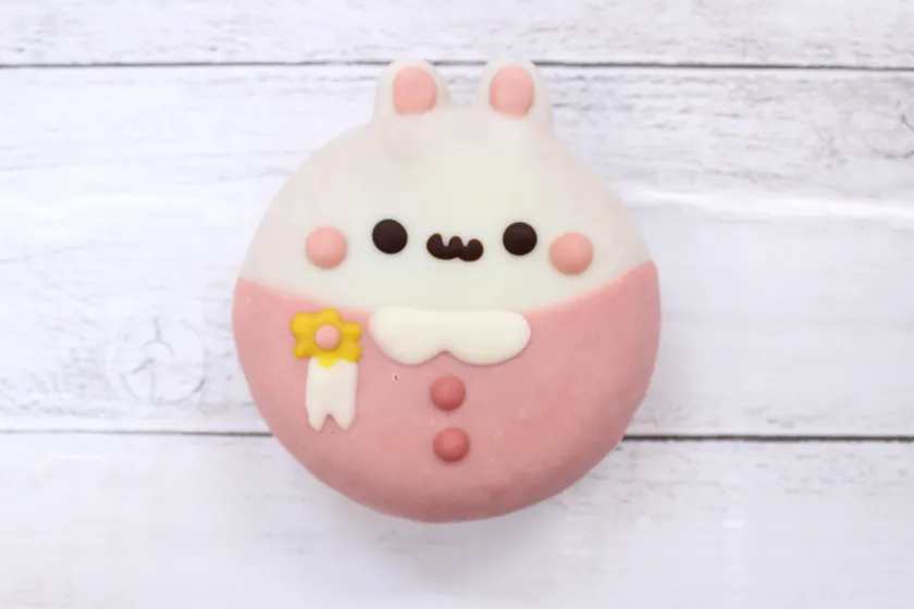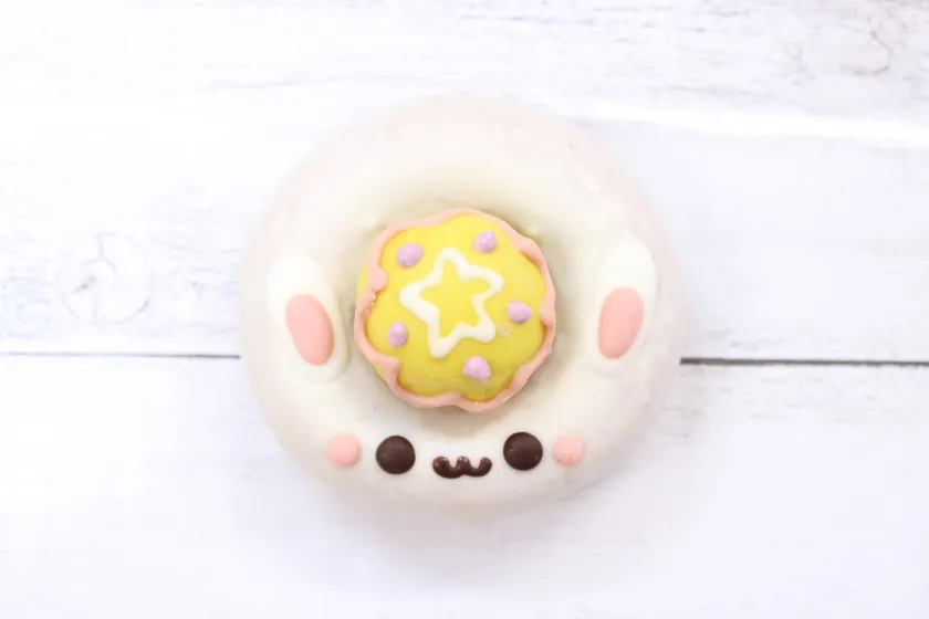 うさちゃんとひよこちゃんに、たまご型のスペシャルドーナツが付いた春らしい色合いのかわいいセットです。