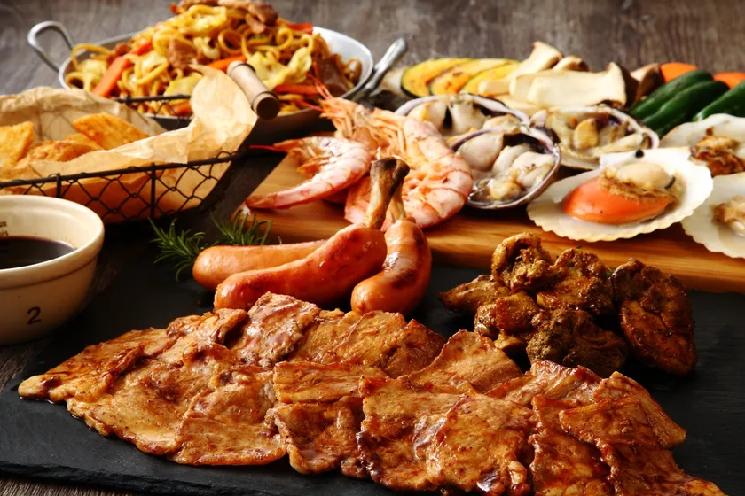 海鮮BBQセットやあつもり!肉々セットといった豊富な通常メニューに加え、一人前3万円のプレミアムな究極のBBQや、大豆ミート対応のビーガン対応BBQ、さらには話題の韓国式BBQメニューも登場。