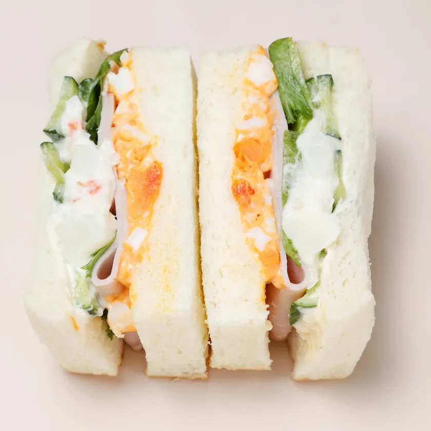 【自家製蘭王卵たまごサラダにハム・ポテトサラダを合わせた『まるごとミックスサンド』】